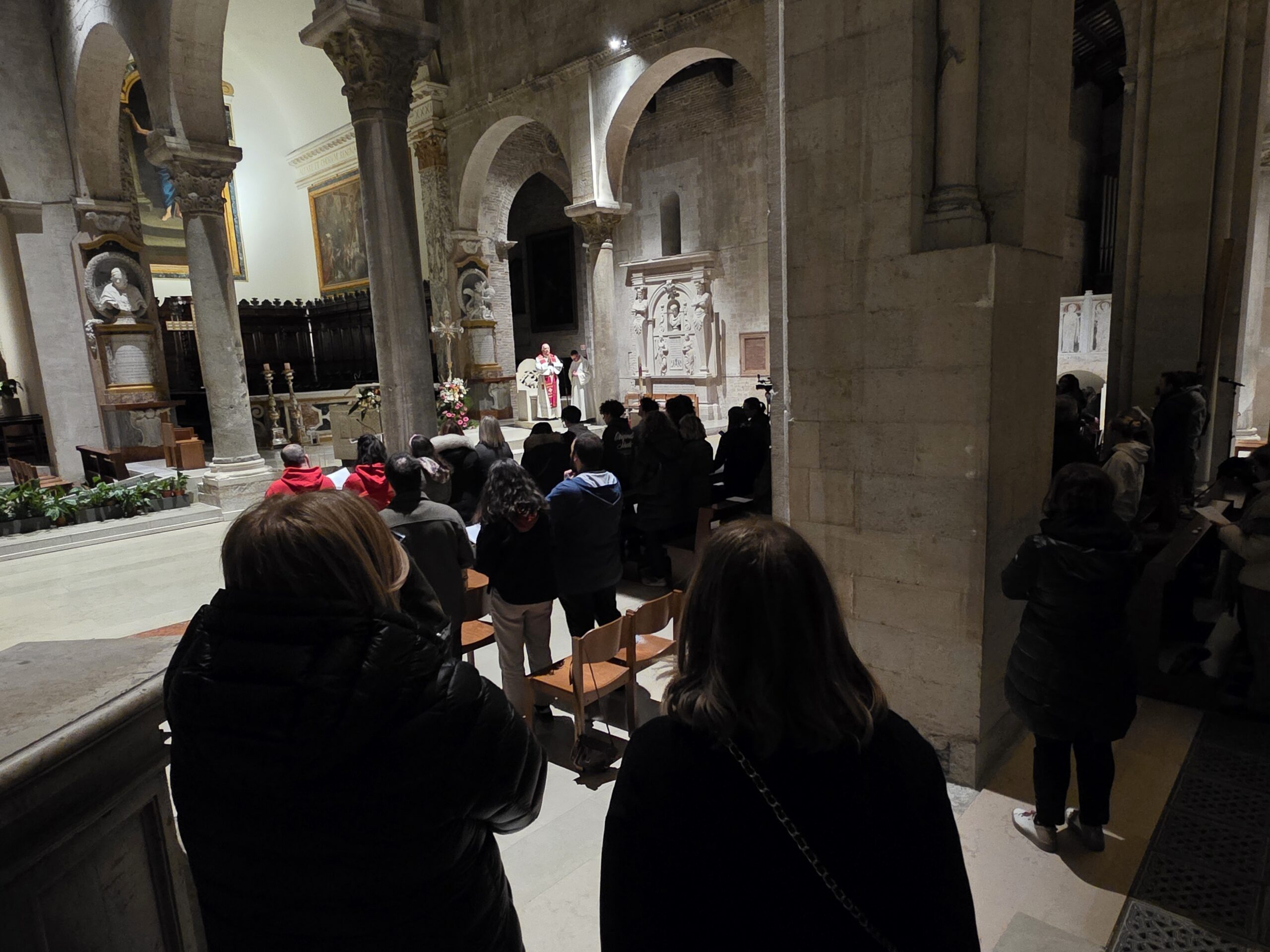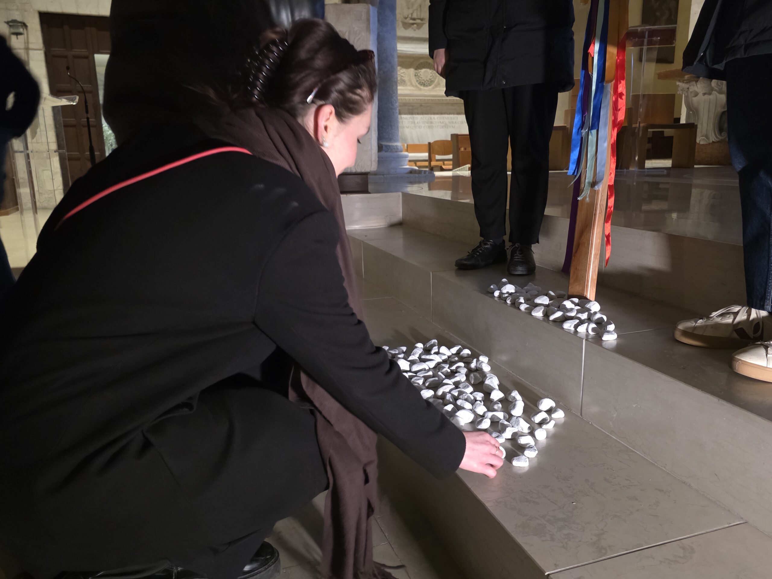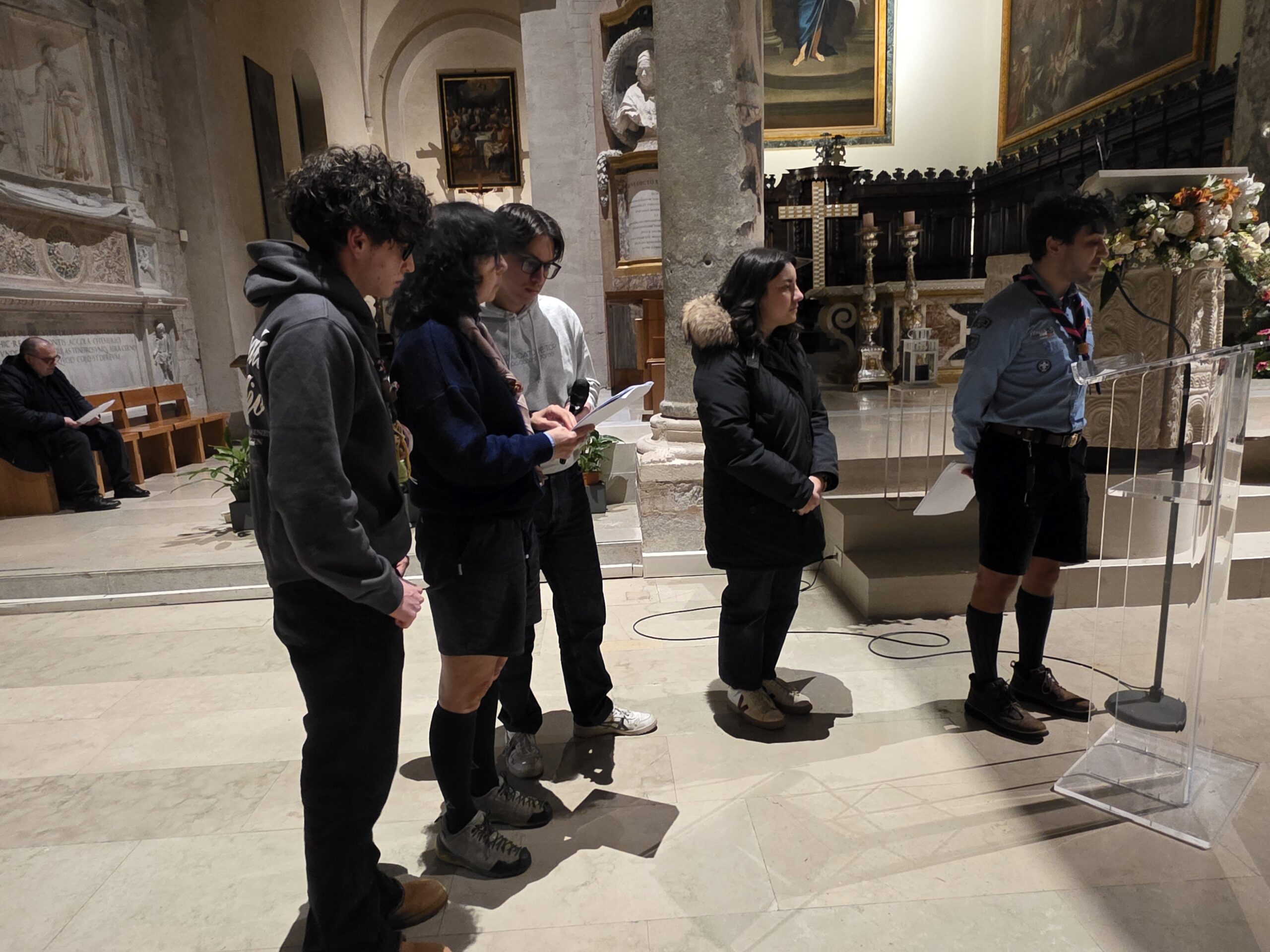 Alla fine del percorso, le pietre sono infatti state deposte ai piedi della croce luminosa. Un piccolo gesto simbolico, con cui i giovani hanno affidato a Gesù le loro fragilità e accolto l’invito a diventare pietre vive, lasciandosi trasformare dal suo amore e mettendosi a servizio degli altri.