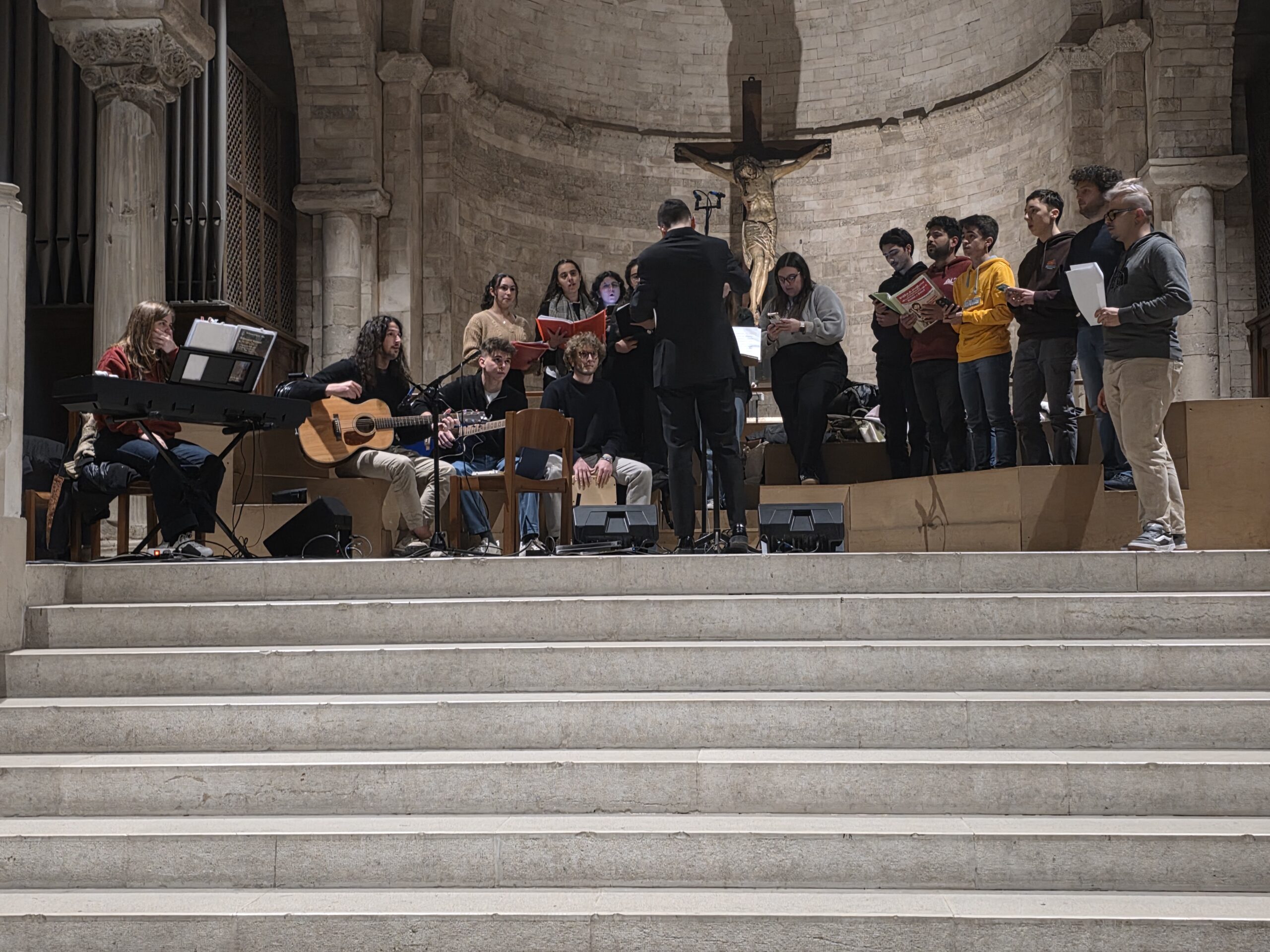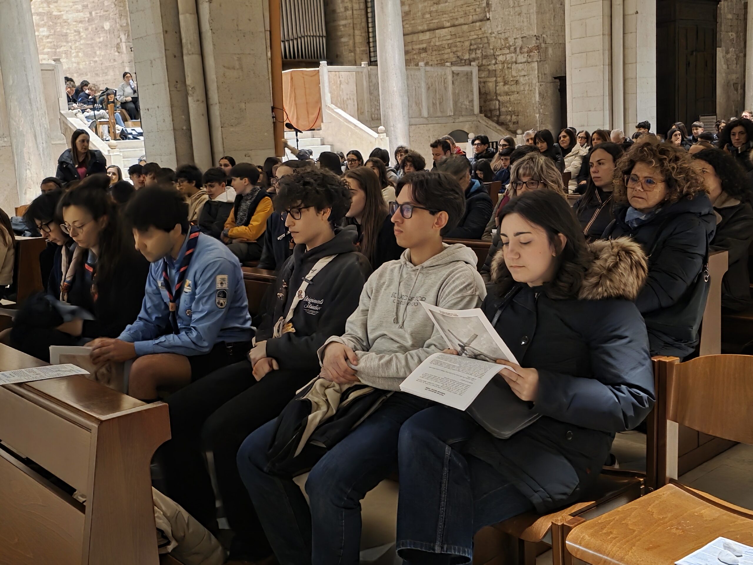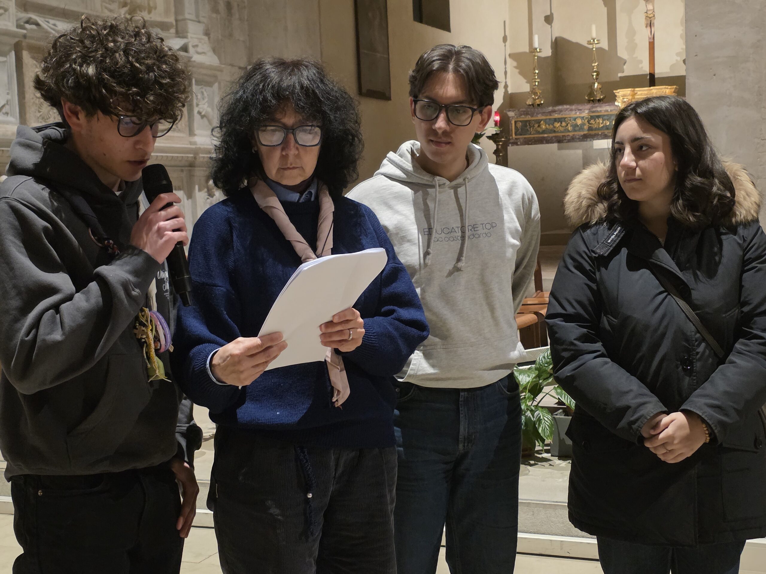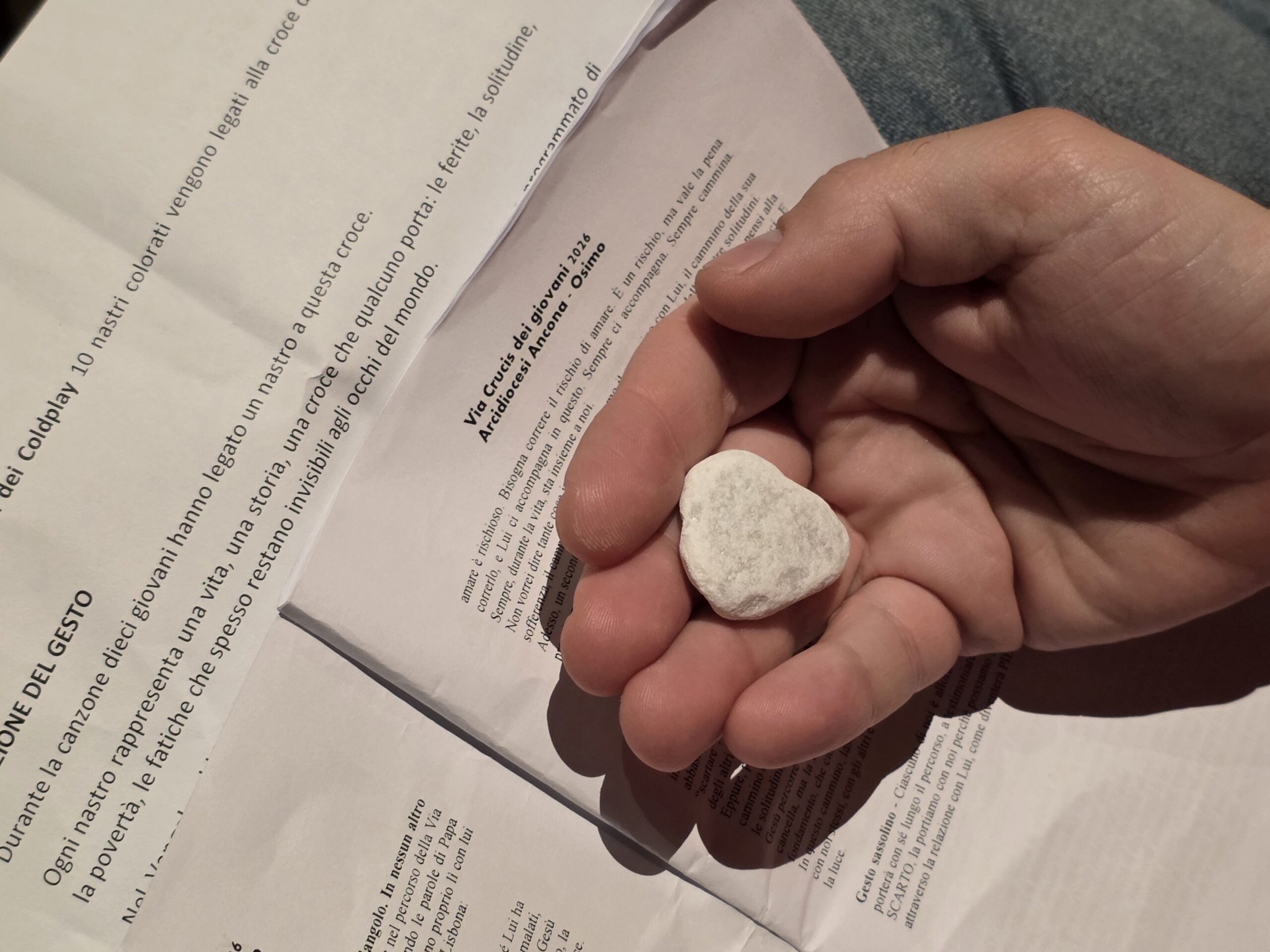 A rendere concreto questo cammino è stato fin dall’inizio un gesto semplice e significativo: all’ingresso, ogni giovane ha ricevuto una pietra da portare con sé lungo tutto il percorso. Una pietra che rappresentava le fragilità, i limiti, le insicurezze, ma anche quei pezzi di vita che spesso si vorrebbero scartare. Stazione dopo stazione, accompagnati dalla Parola, dalle testimonianze e dai gesti, i giovani hanno riscoperto che proprio ciò che sembra fallimento può essere trasfigurato dall’amore di Dio.