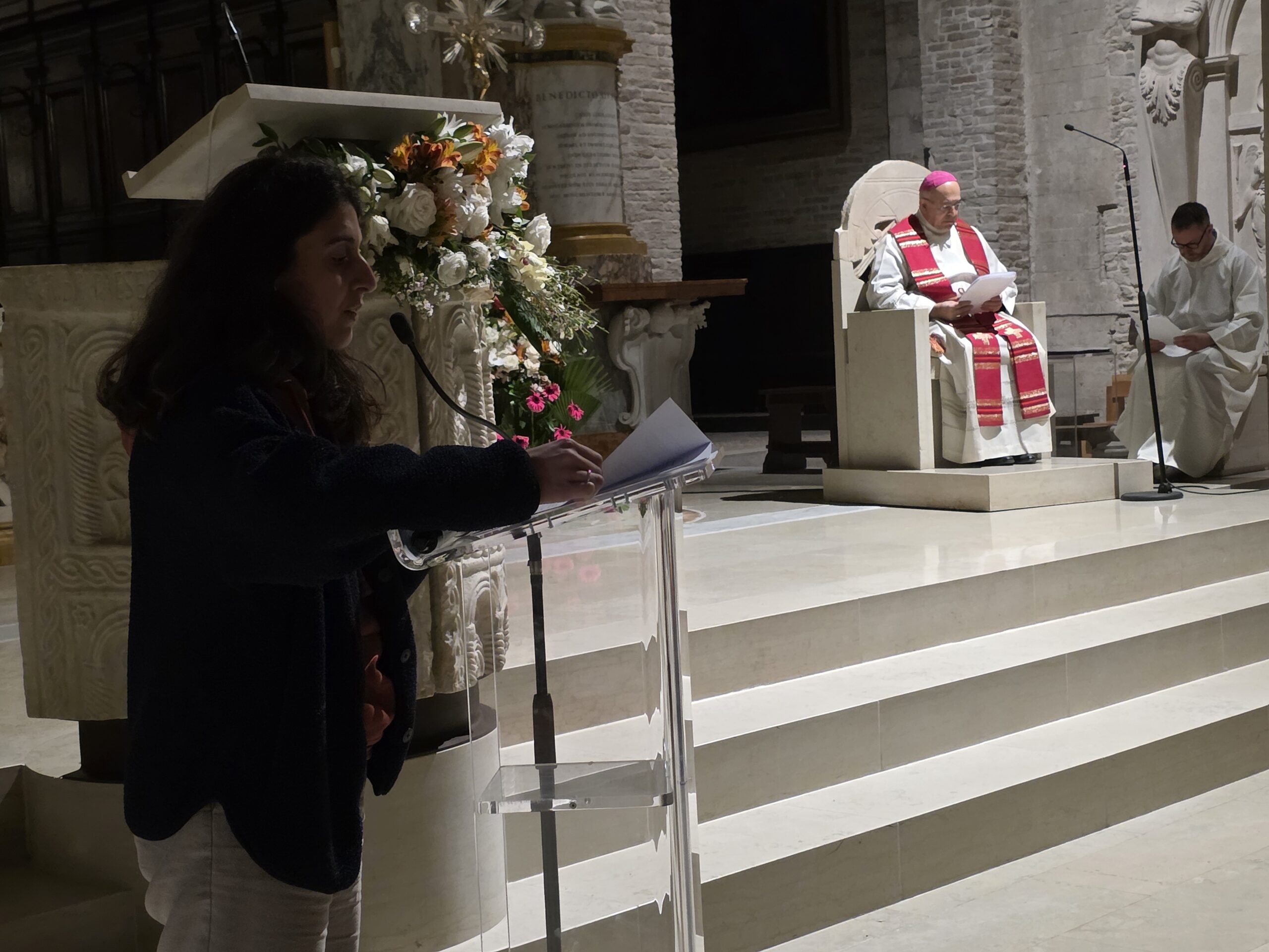 Nella terza stazione, la testimonianza di una giovane, segnata dal bullismo e dalla depressione, ha toccato profondamente i presenti. Un racconto vero, senza filtri, attraversato dal dolore, ma illuminato da una presenza decisiva: quella degli amici incontrati nel movimento Fides Vita. «Poi siete arrivati voi, i miei amici…quelli veri. Mi avete tenuta in vita quando io non avevo più forza. Mi avete salvata, anche senza saperlo. Il vostro amore è stato una barriera contro il mio dolore, una voce più forte di quella che mi diceva di mollare», ha raccontato Sofia. Parole che hanno risuonato con forza nella Cattedrale, ricordando a tutti che anche nelle situazioni più buie una presenza autentica può fare la differenza e riaprire alla speranza.