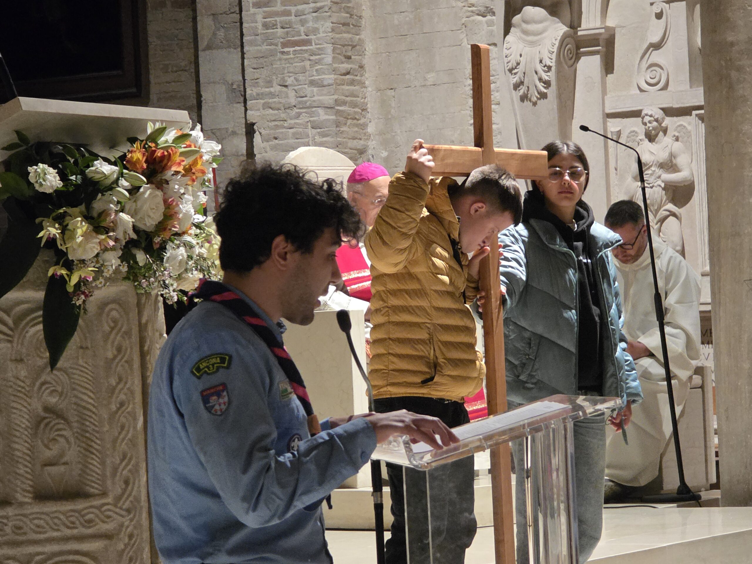 «Gesù è la pietra che, scartata da voi costruttori, è diventata pietra d’angolo. In nessun altro c’è salvezza». Questo versetto degli Atti degli apostoli ha guidato i giovani nel percorso della Via Crucis, vissuta – a causa del maltempo – nella Cattedrale di San Ciriaco anziché, come da tradizione, sul Monte Conero.