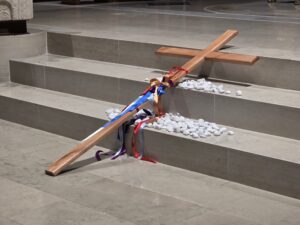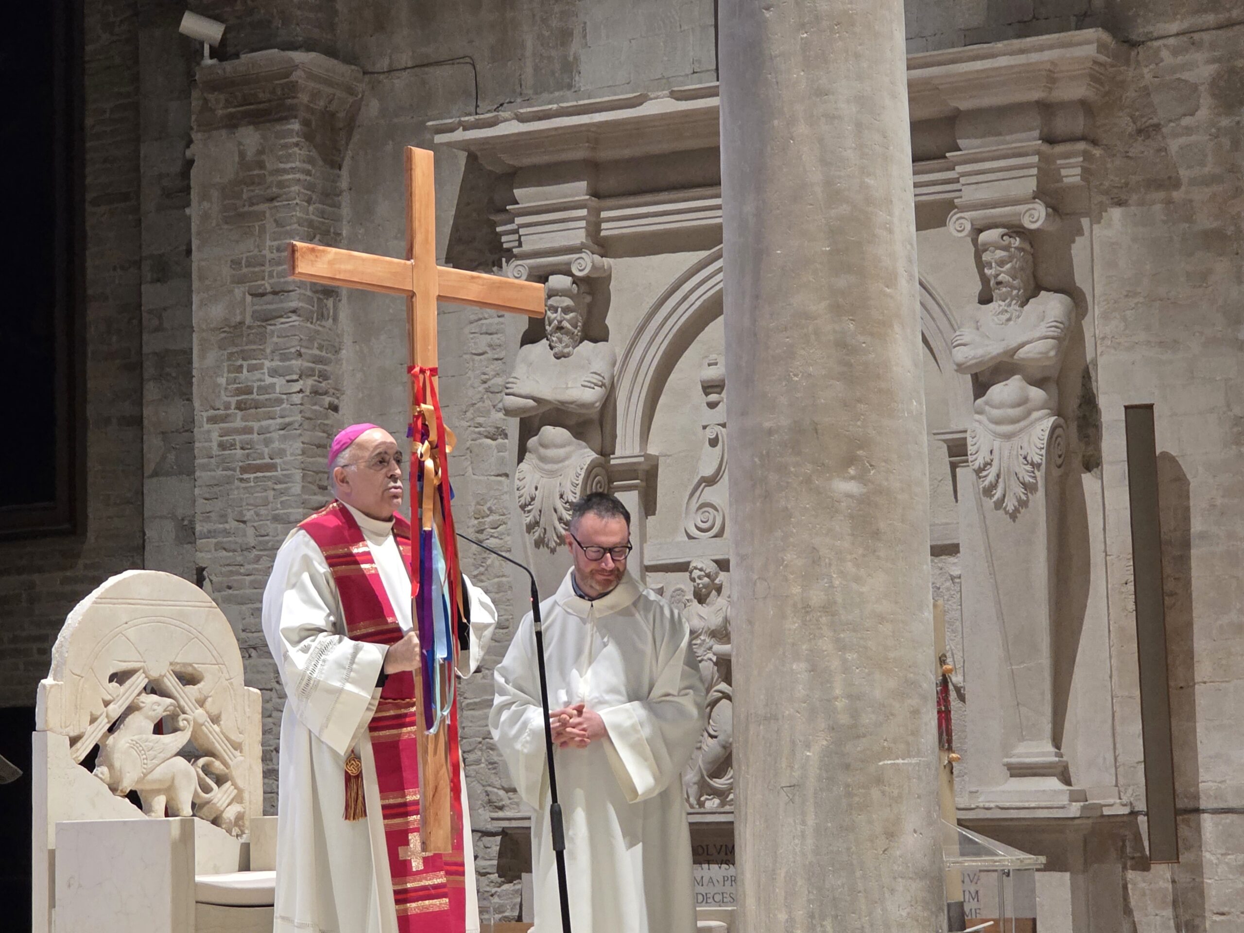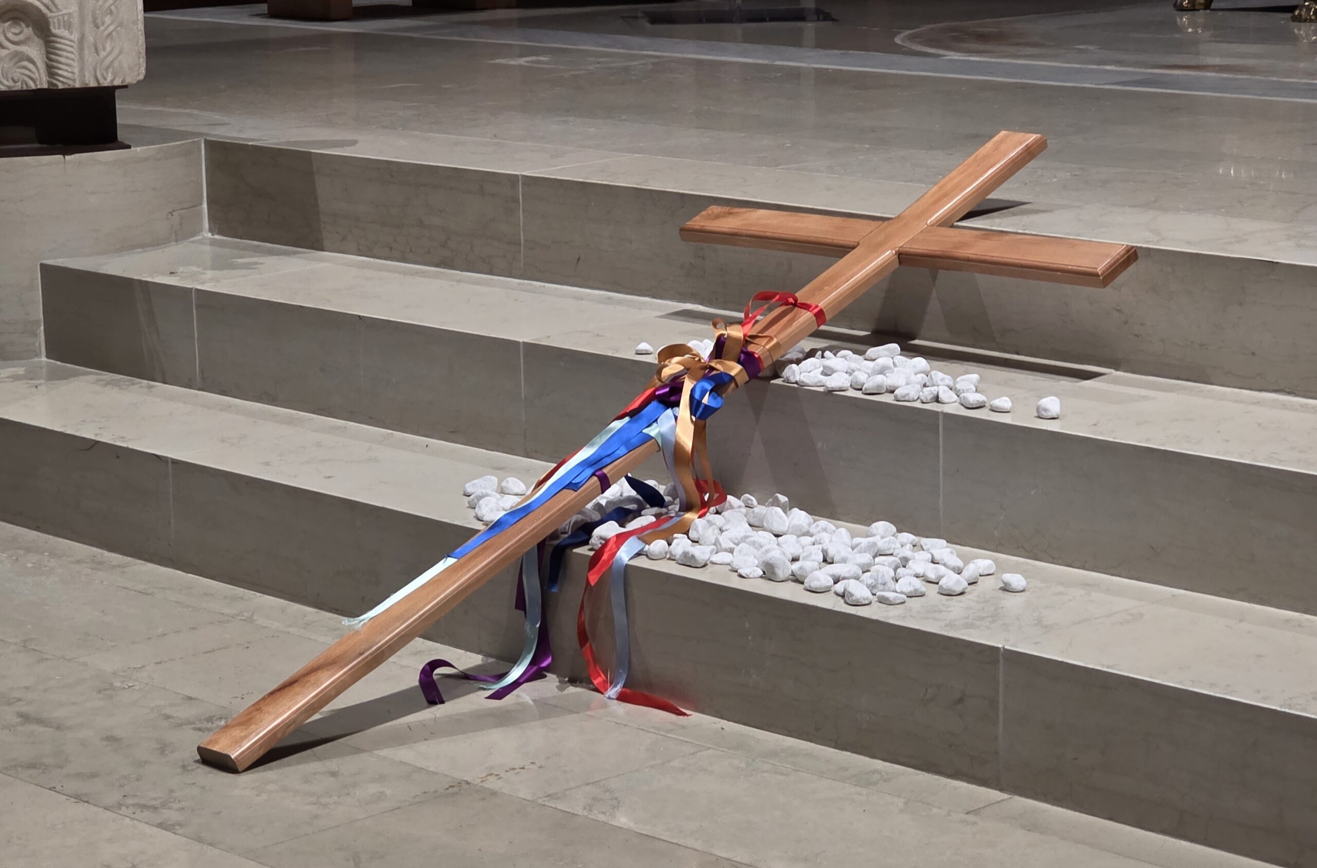 Il gesto dei nastri legati alla croce di legno, posta davanti all’altare, ha reso visibile tutto questo. Ogni nastro ha rappresentato una vita, una storia, una croce. Un segno forte per ricordare che nessuno deve portare il proprio peso da solo. Da qui la scelta concreta del gemellaggio della nostra diocesi con la Diocesi di Nyahururu in Kenya: per camminare insieme, condividere il peso e ricordarci che siamo un’unica famiglia. Sarà un percorso che durerà cinque anni con l’obiettivo di costruire un legame vivo, fatto di relazioni, preghiera e sostegno reciproco.